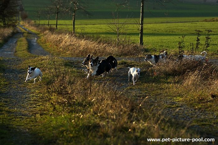 mit Ima und Ella und Ankes Jack Russell Terriern Nupi, Flecki, Pootch und Meff