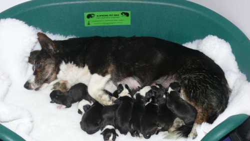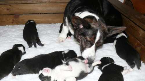 Guiny mit ihren Welpen kurz nach der Geburt im Sommer 2010