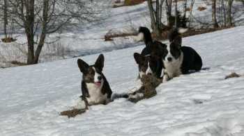 Guiny mit ihren halbjährigen Kindern im Winter 2011: |