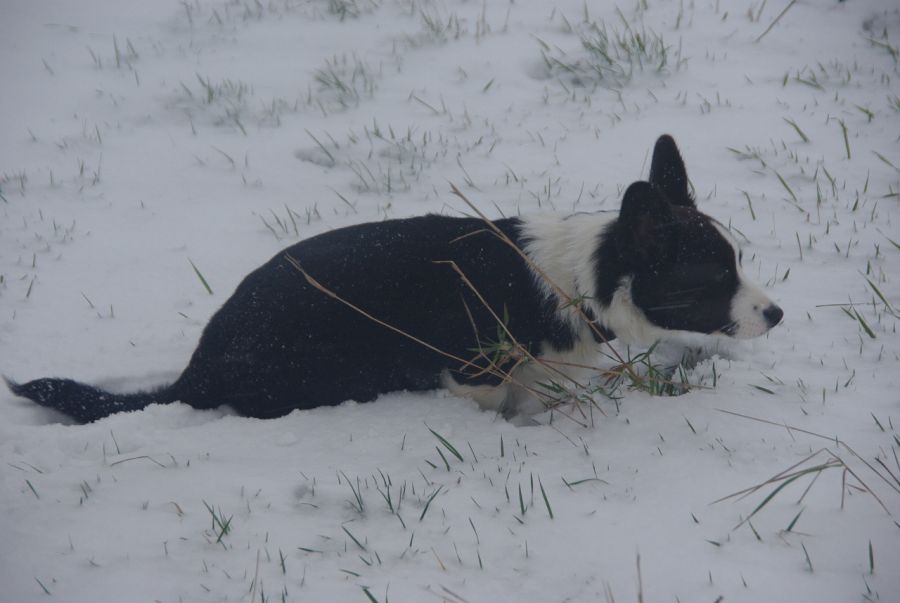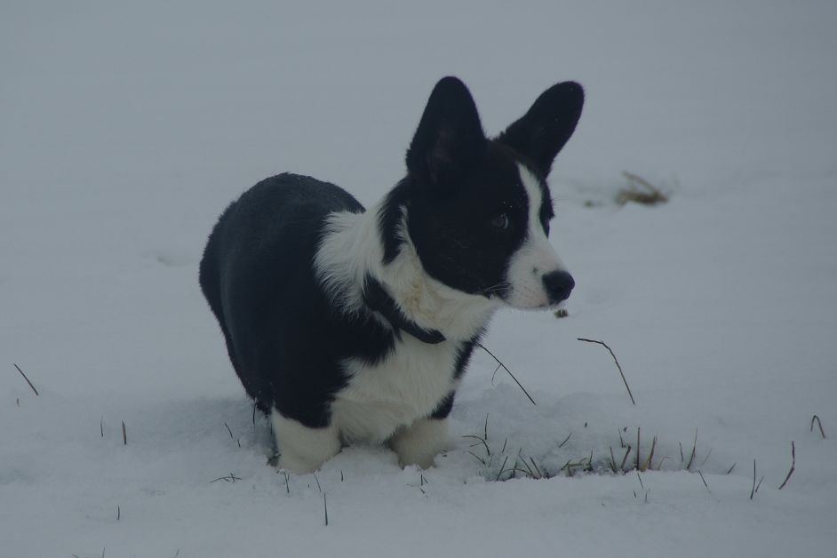 Der erste Winter für Orville im Januar 2016, da ist er knapp 4 Monate alt |