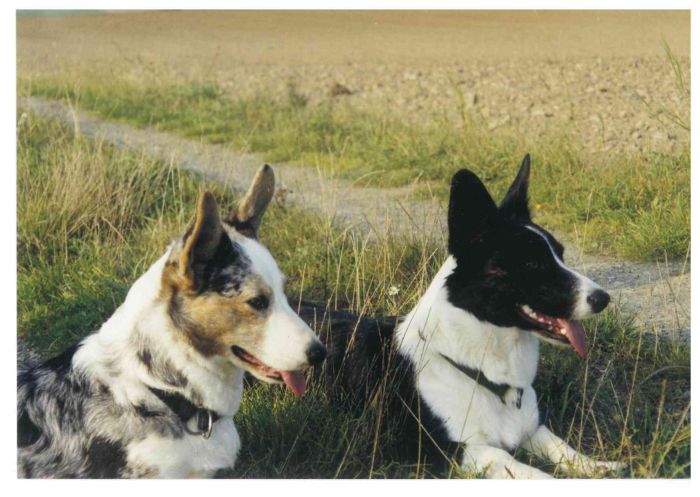 Paula war unsere erste Cardigan-Hündin. Sie ist 1996 im Alter von 10 Wochen bei uns eingezogen und hat unsere Herzen im Sturm erobert. Ihr Temperament war nicht zu stoppen. Immer gut gelaunt ist sie mutig und selbstbewusst und dabei neugierig und verspielt bis ins Alter durchs Leben gegangen. Ihr verdanken wir unsere Liebe zu den Cardigan Corgis und die Passion, diese wunderbaren Eigenschaften durch die Zucht zu erhalten. Paula ist die Stammhündin unserer Joy Transfer Corgis. Als erfolgreiche Ausstellungshündin und unkomplizierte, gute Mutter hat sie uns den Beginn der Zucht leicht gemacht. Wir haben mit ihr unseren A-, B- und D-Wurf gezüchtet. Aus ihrem und unserem ersten Wurf ist 1999 ihre Tochter April bei uns geblieben und weitere Generationen sind gefolgt. So lebt unsere unvergessene Paula in allen Joy Transfers weiter. |