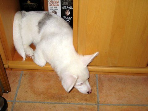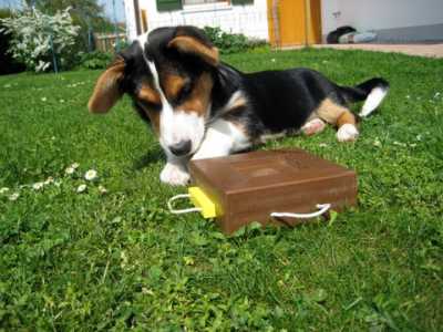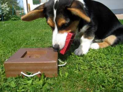 "Intelligenzspielzeug". Beste Leckerlis kann man finden, wenn man weiß wie es geht. Kein Problem für Gwenny |
