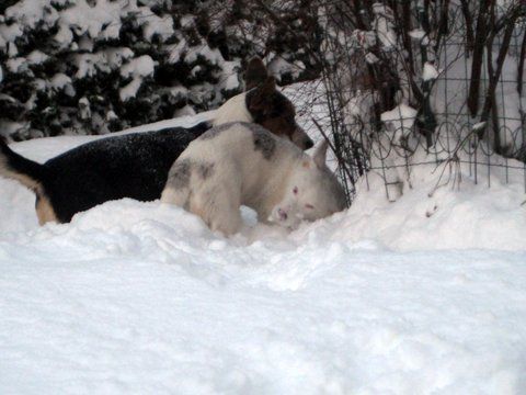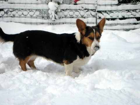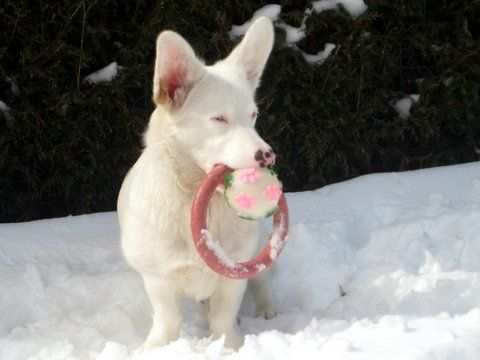 erste Schnee gefällt der halbwüchsigen Snowy, und er passt so gut zu ihr |