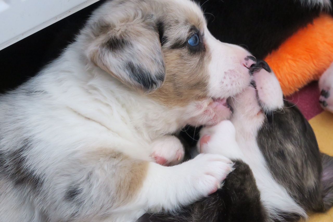 Int.Ch. Floatin' Cyntaf in Blue | NL Ch. Floatin' Yoker Yip | |