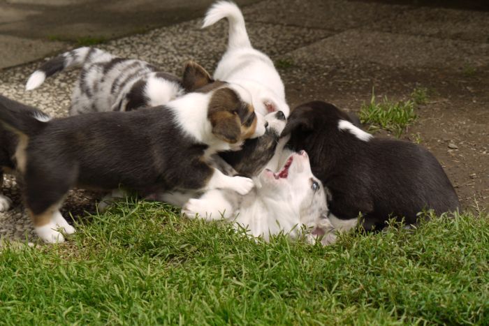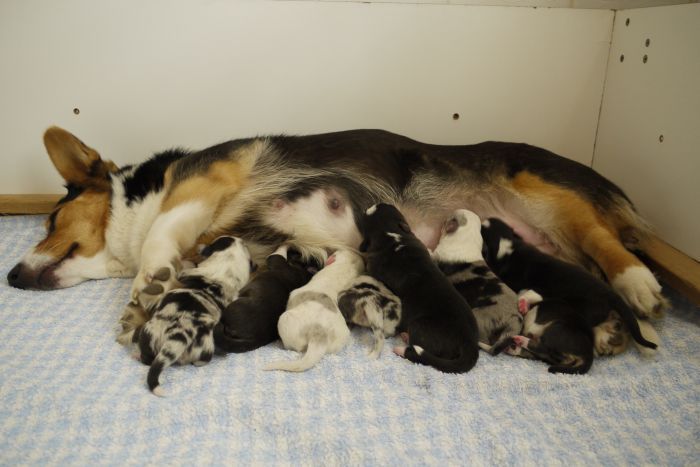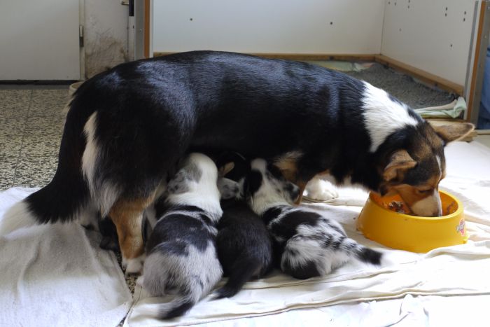 Rolle als Mutter sehr wohl und versorgt ihre Welpenschar