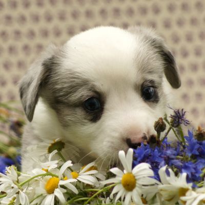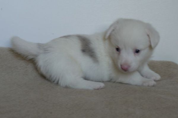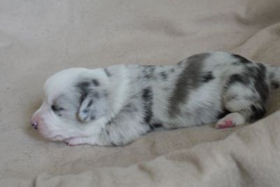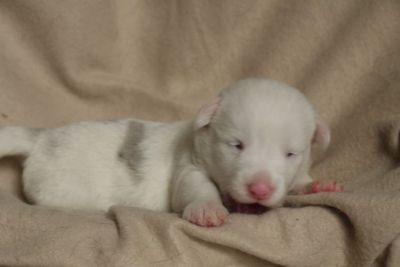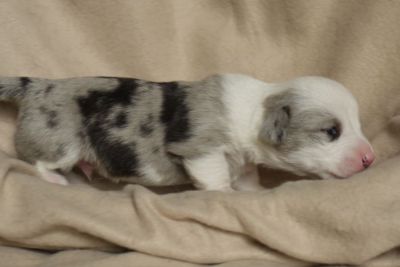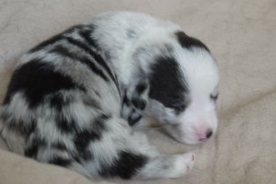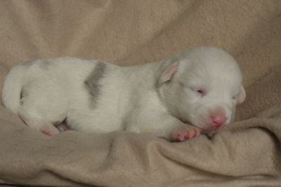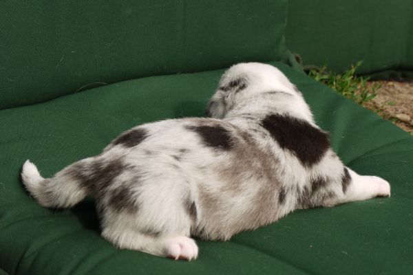Limpid Lizzey Hündin, blue merle (überwiegend weiß)