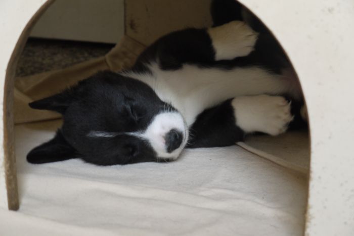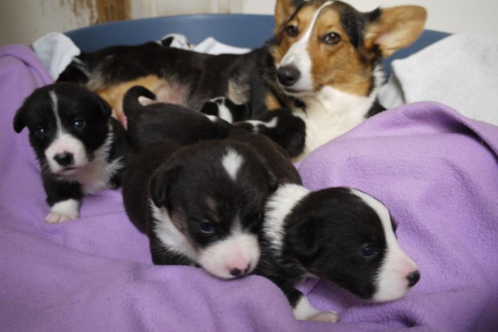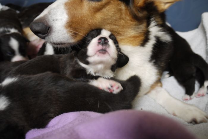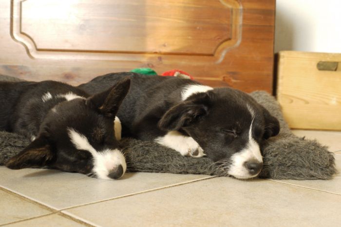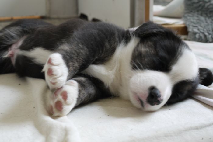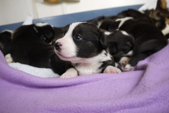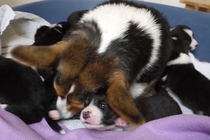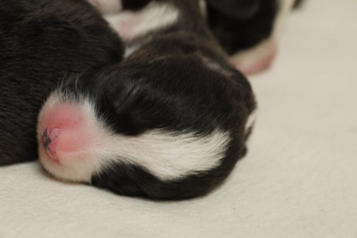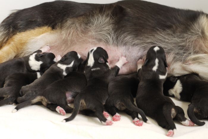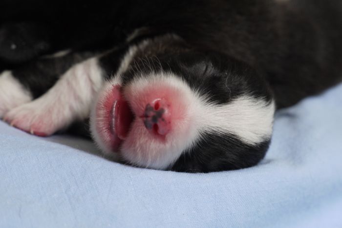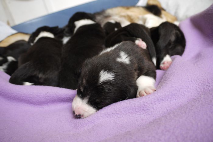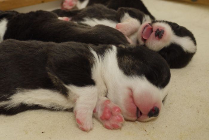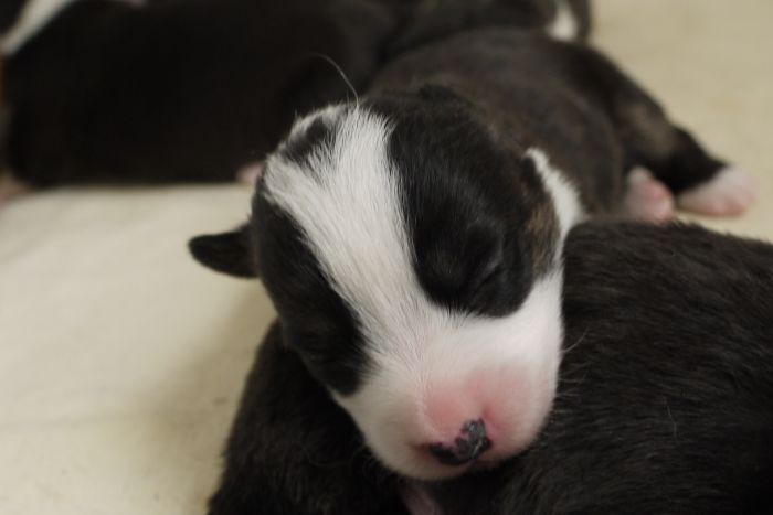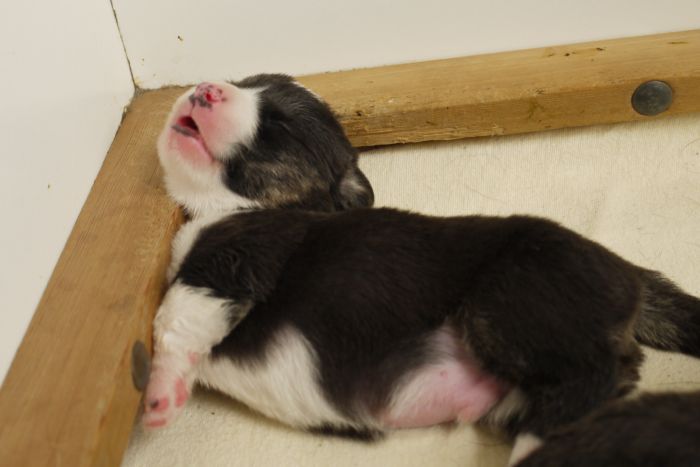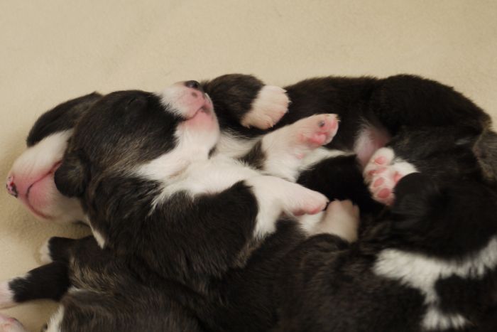 | 6 Tage alt sind die Welpen inzwischen. Nuckeln, kuscheln, schlafen und täglich an Gewicht zunehmen, mehr müssen sie noch nicht können. Und das machen sie sehr brav. |