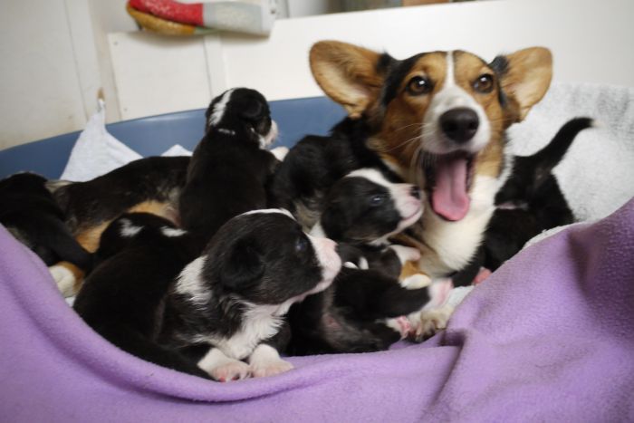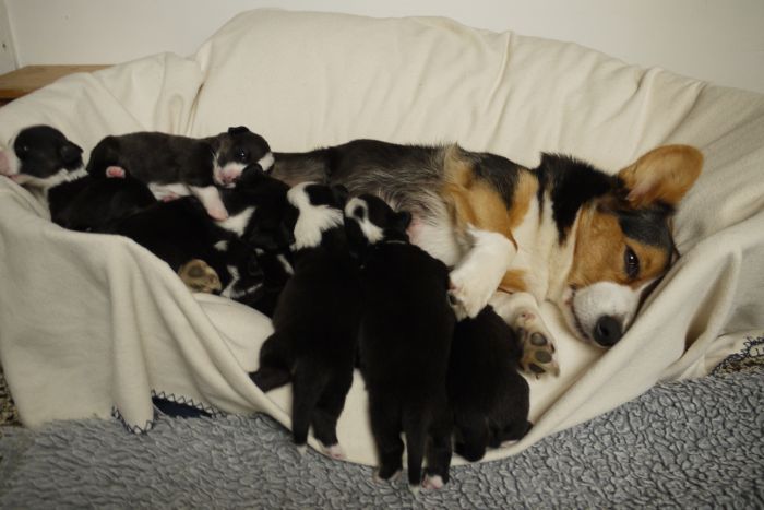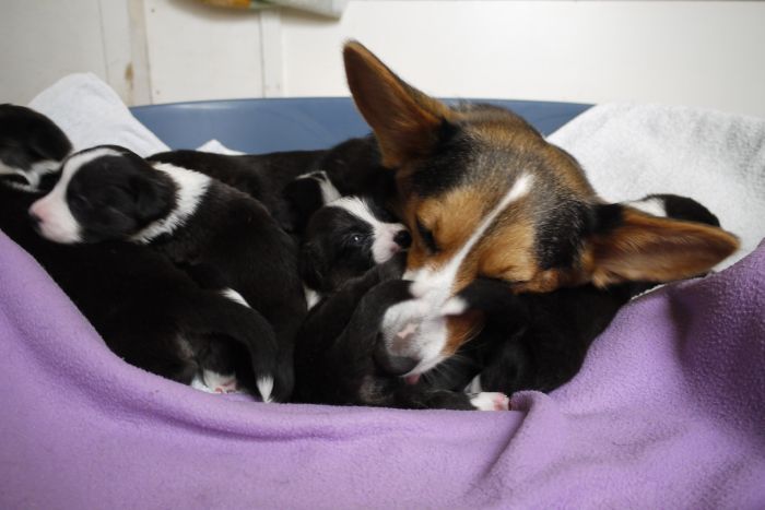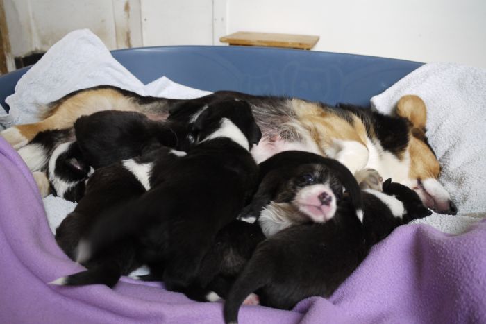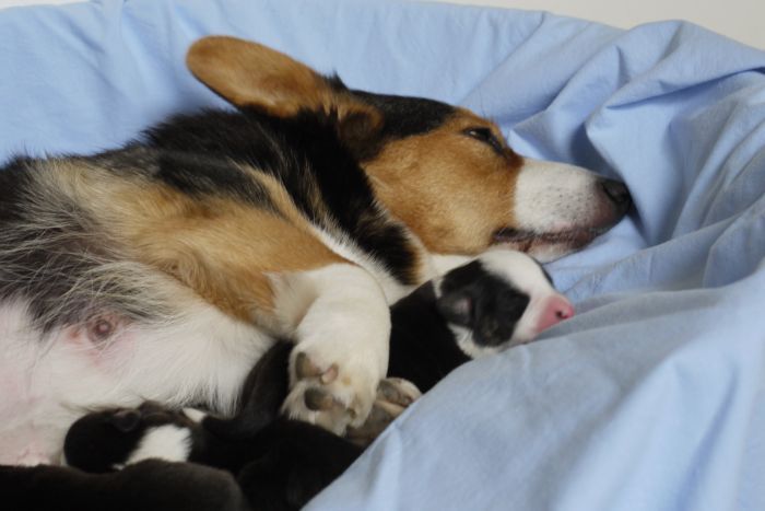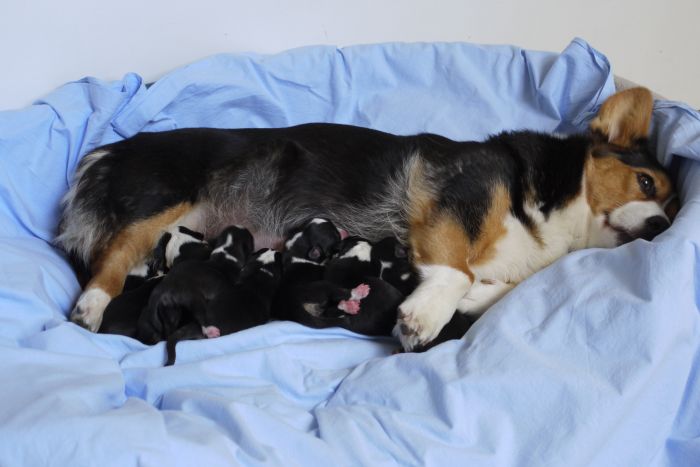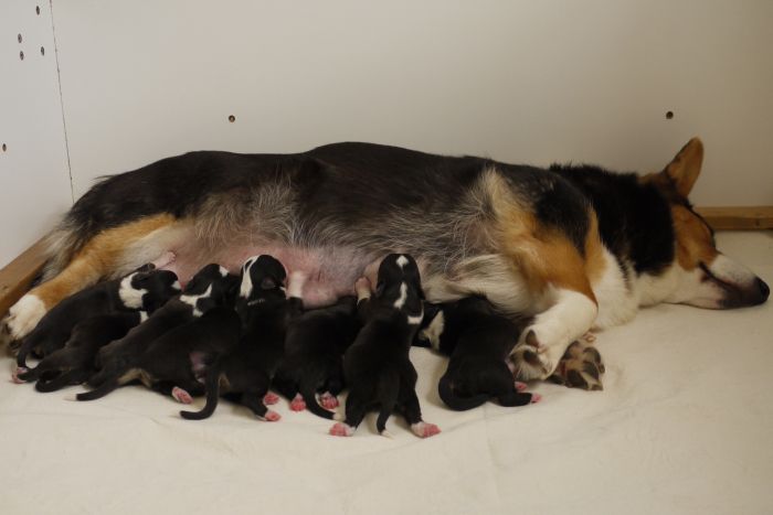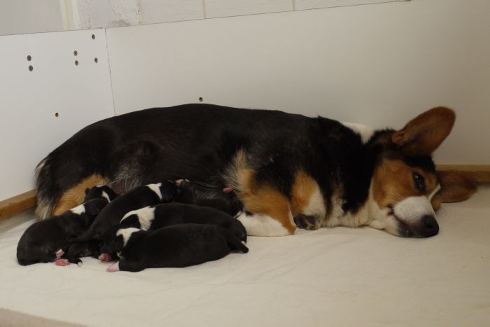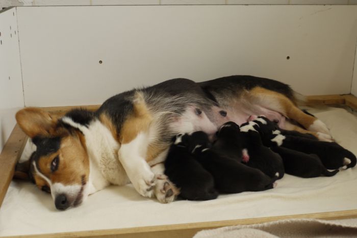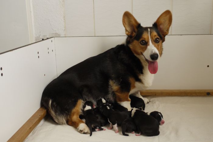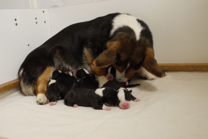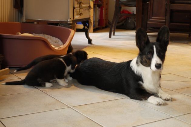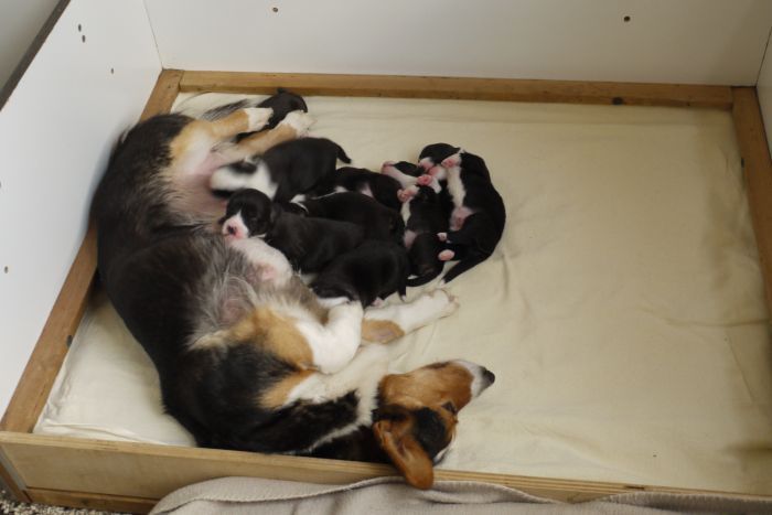 Am schönsten ist es aber immer noch gemeinsam mit der fürsorglichen Mutter Ima im vertrauten Welpenzimmer |