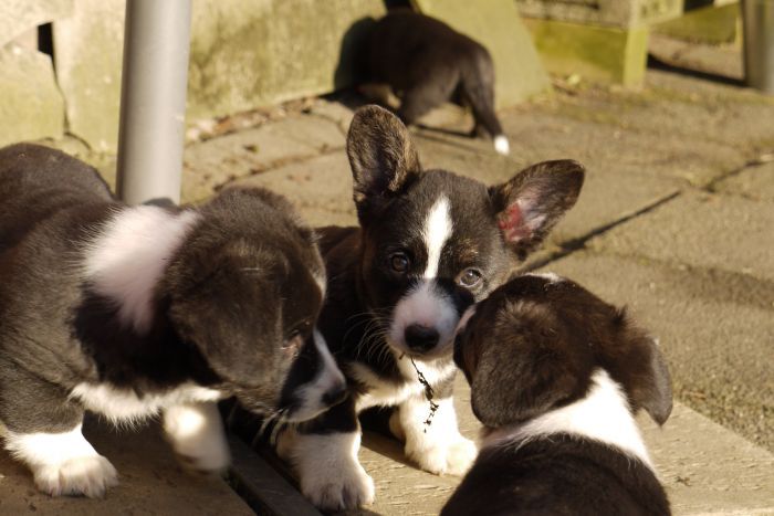 Im Alter von 3 Wochen sind die Welpen jetzt so süß und munter. Auch der November zeigt sich bei uns von der besten Seite, da kann man schon mal kurz frische Luft schnuppern |