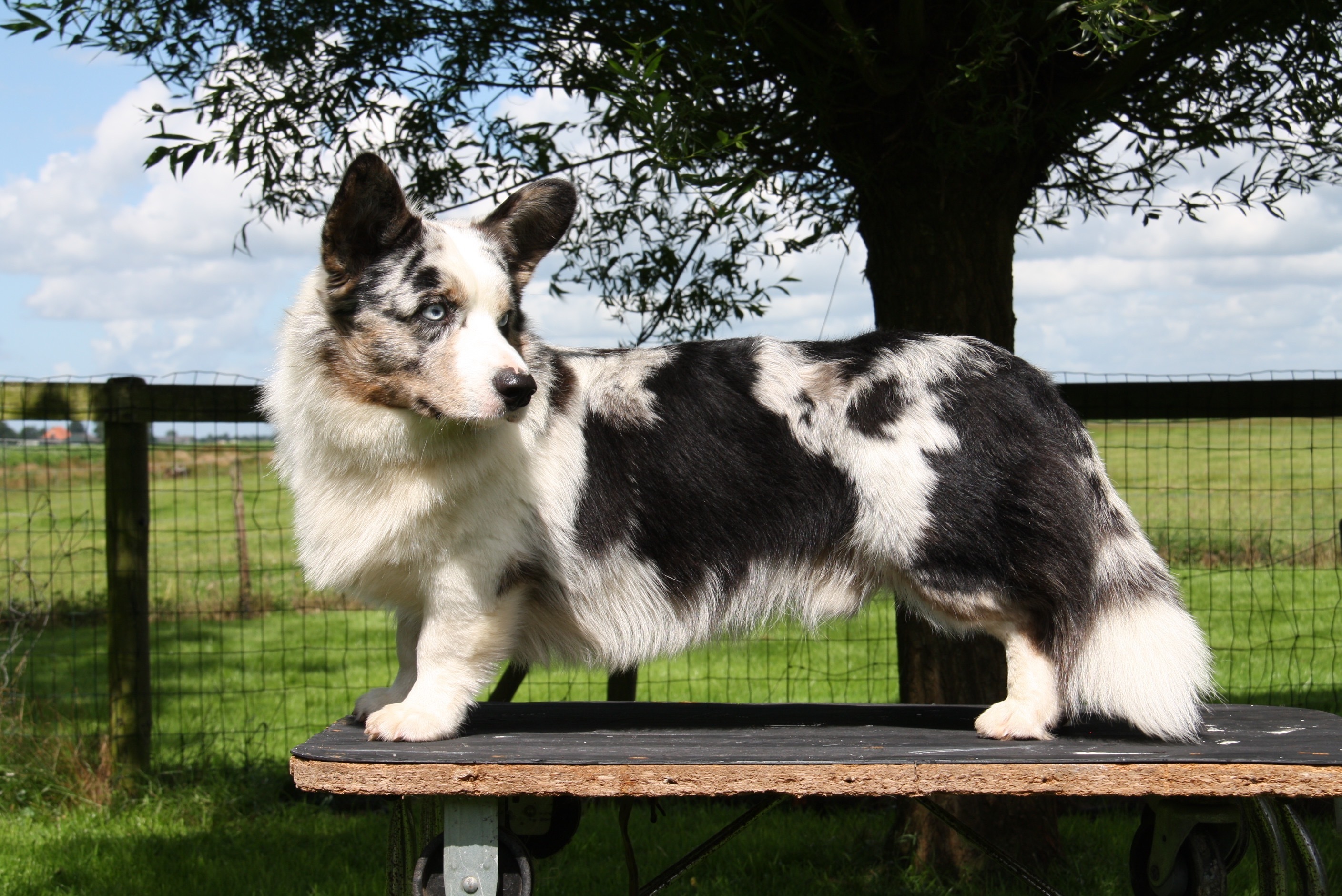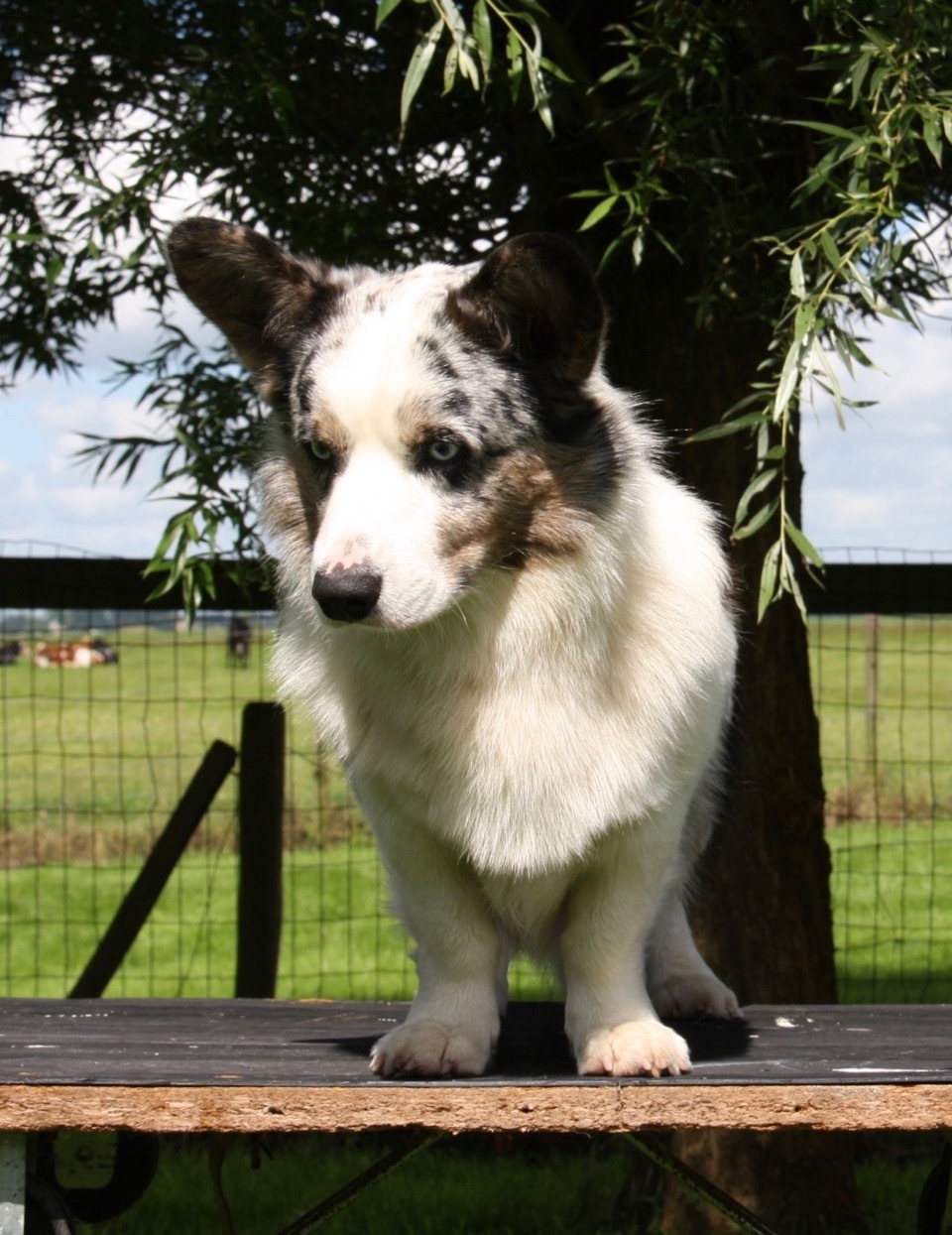 blue merle (M-Locus: N/M), E-Locus: e/E S-Locus: N/N |