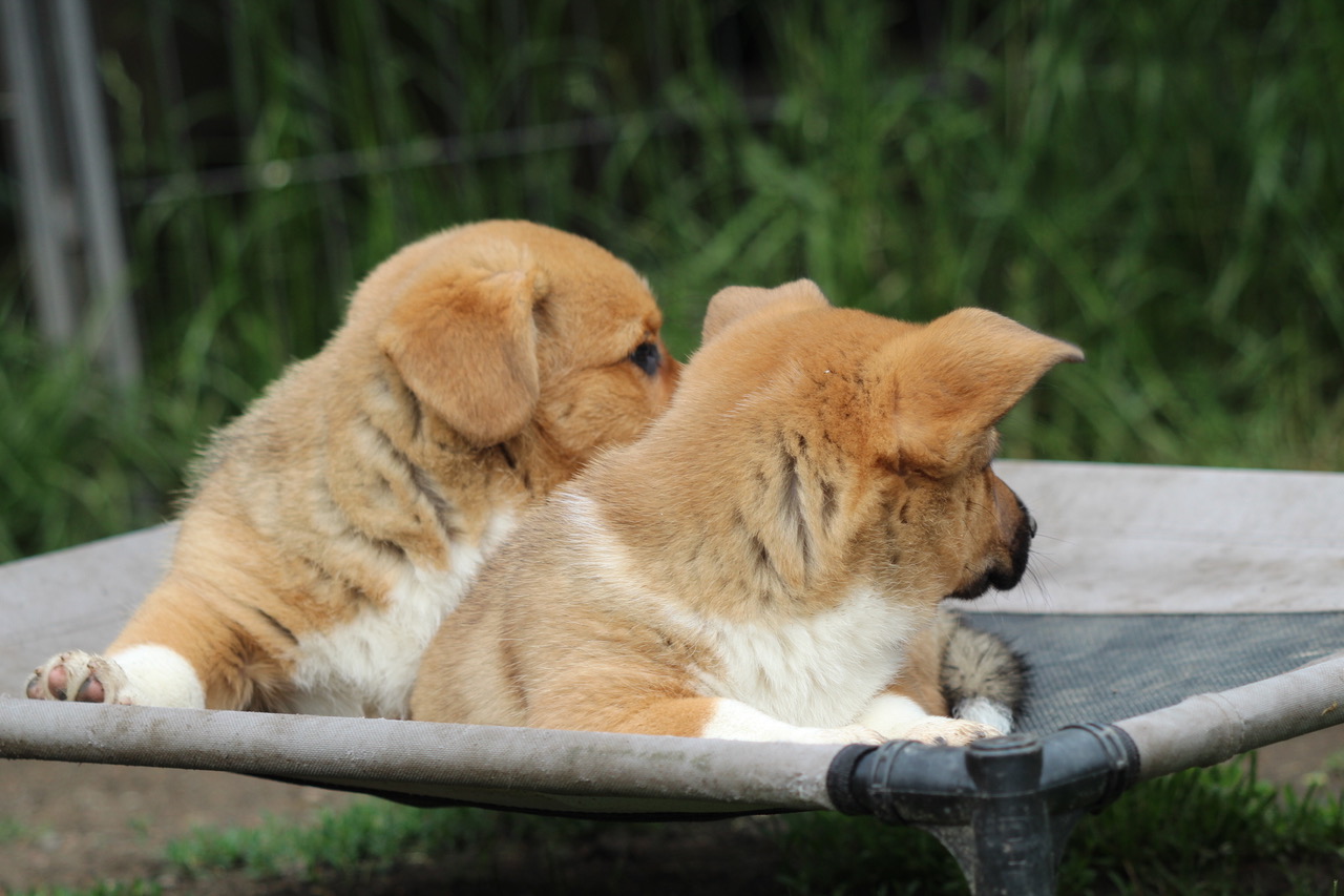 ![]() Wie die Welpen aus jedem Wurf, lieben auch Jule und Julius die Schaukel sehr. Like all the Puppies from every Litter , Jule and Julius also like the swing very much.