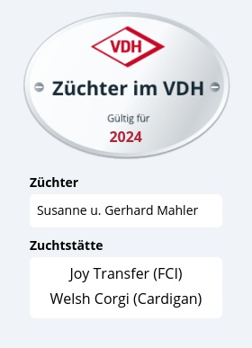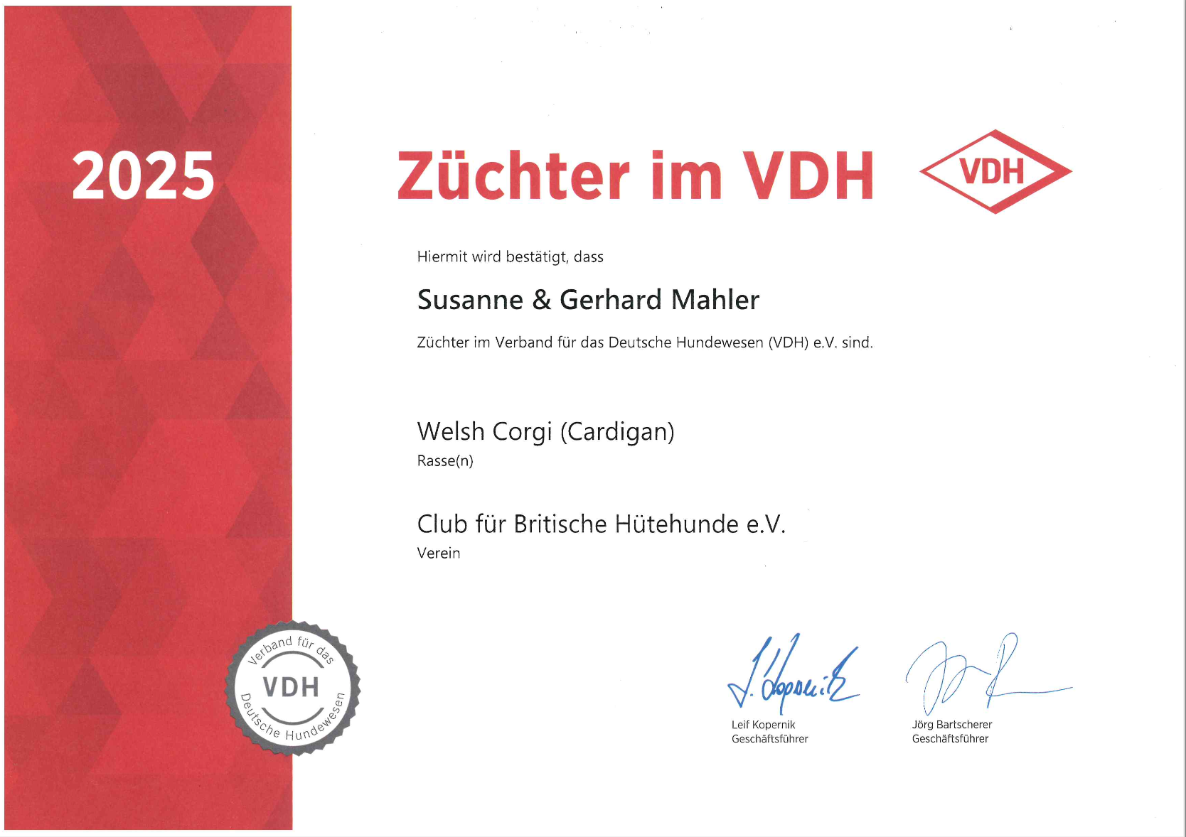 (VDH/FCI) und der Cardigan Welsh Corgi Association (CWCA) als Mitgliedsverein im
