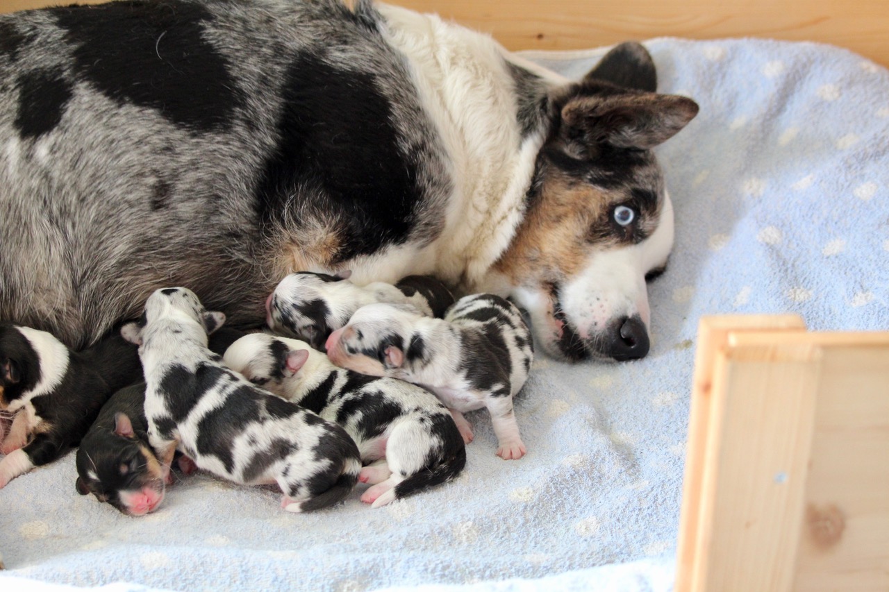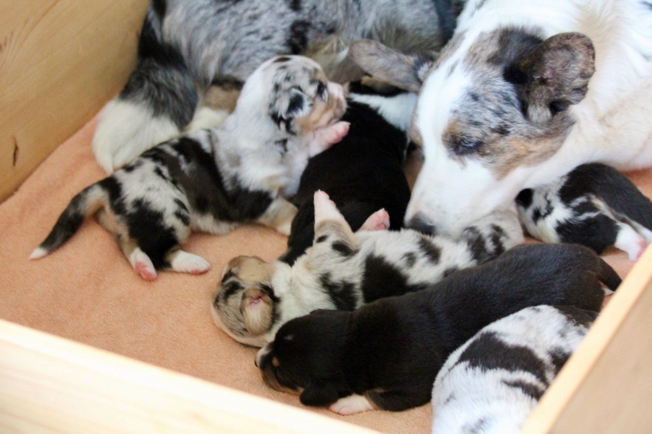 von Viola und ihren neugeborenen Welpen teilen wir gern unsere Freude an der süßen Hundefamilie. |