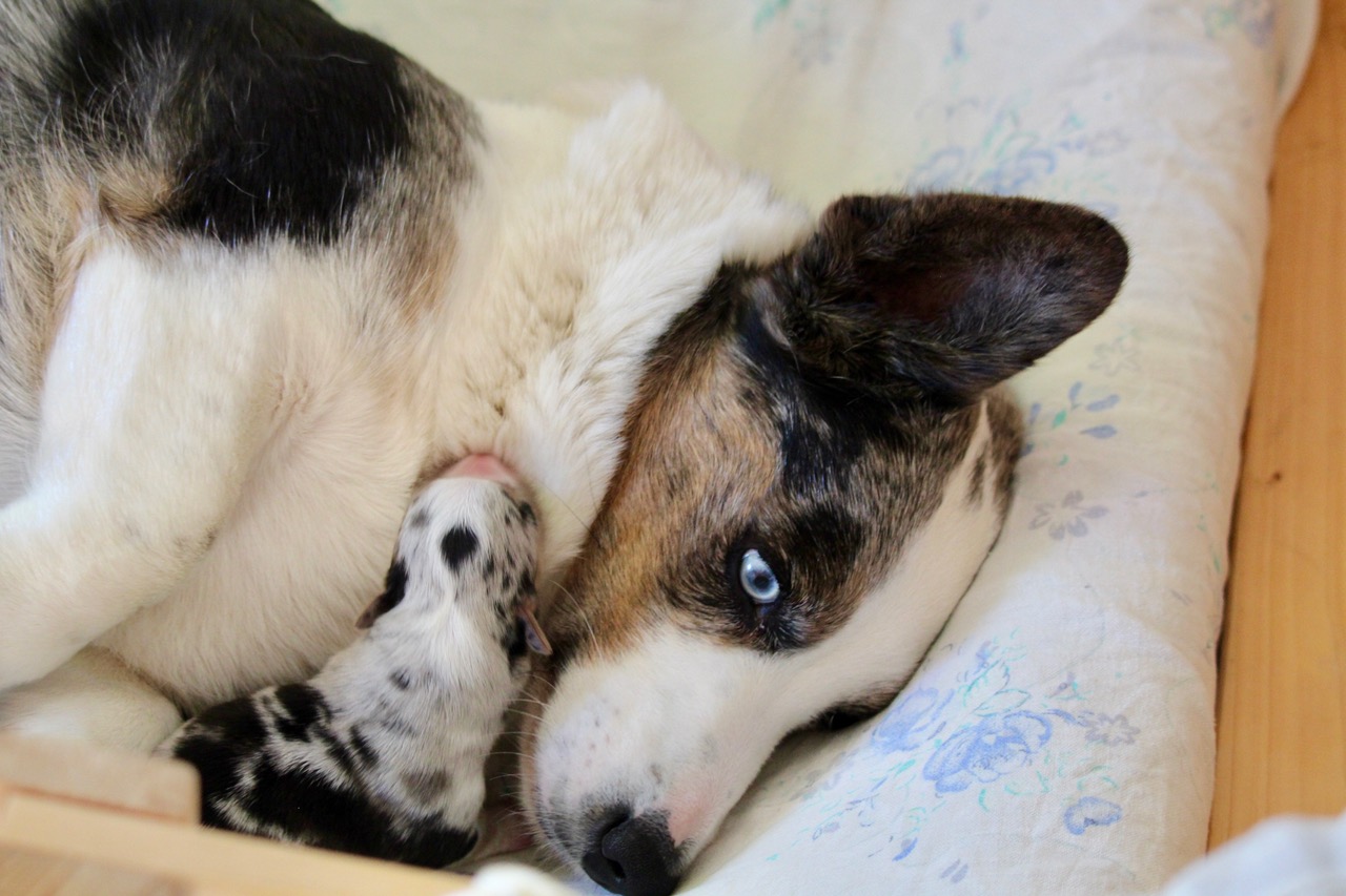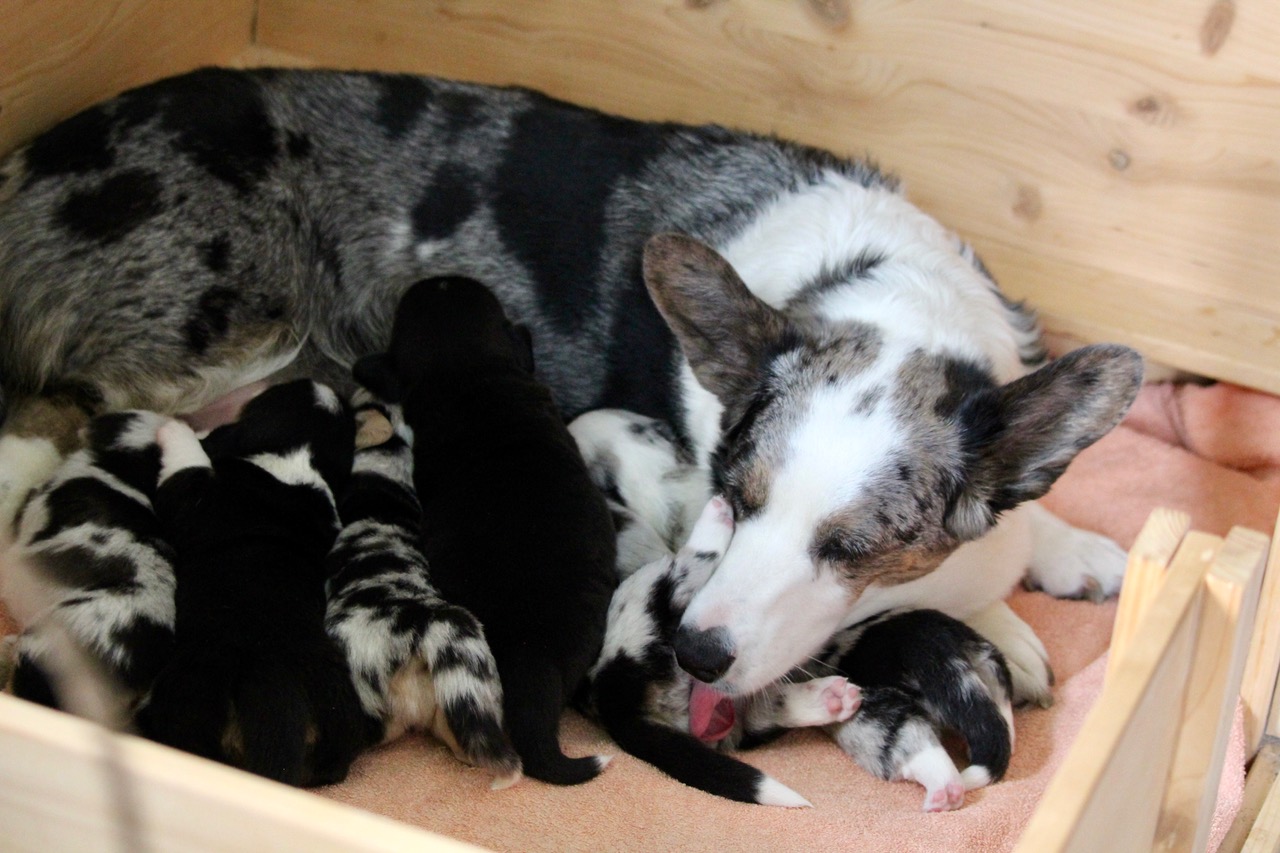 ![]() Viola mit ihren neugeborenen Welpen