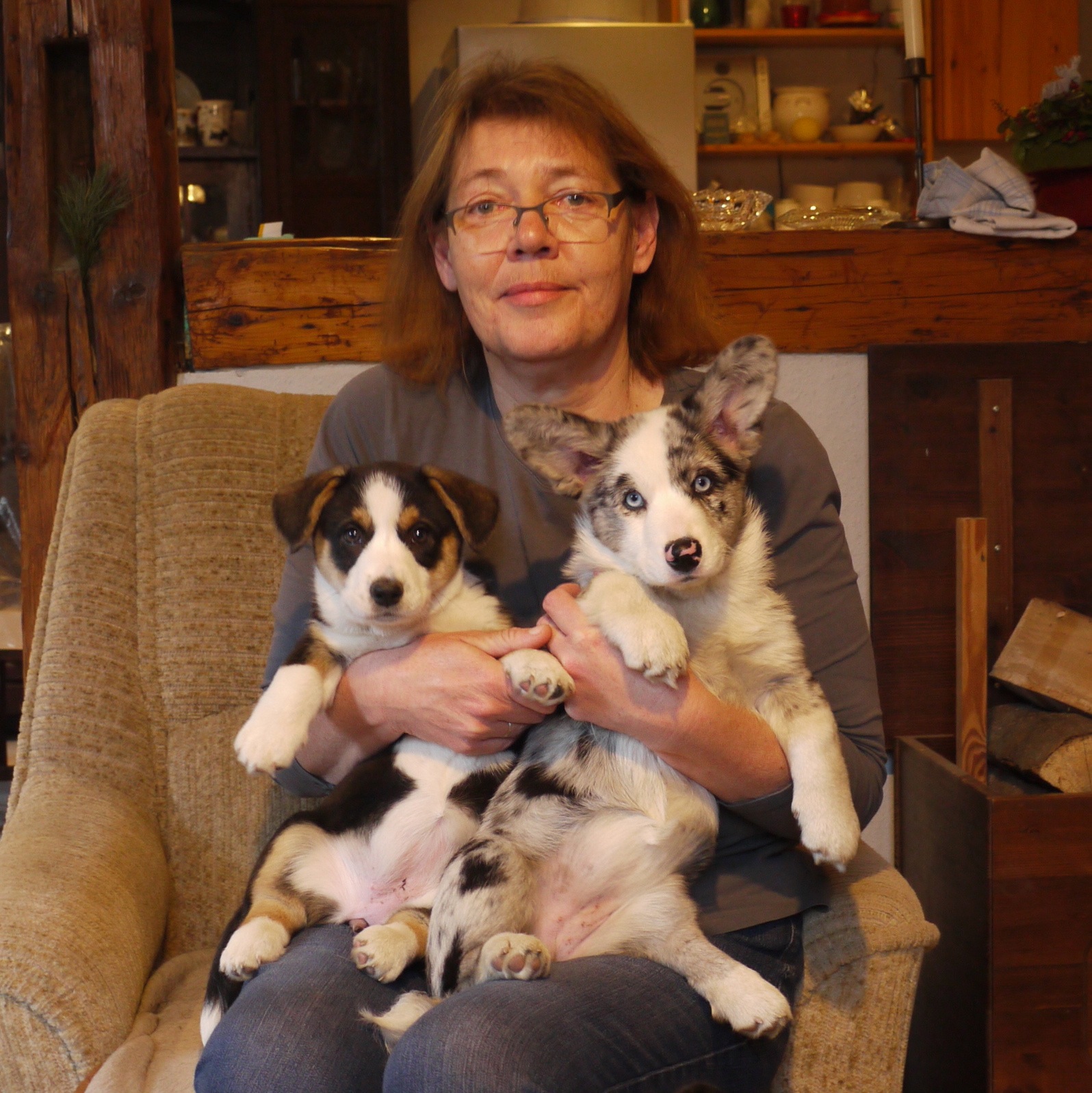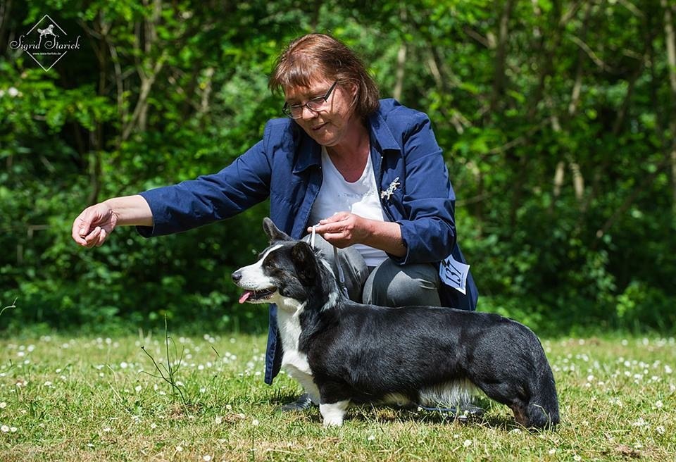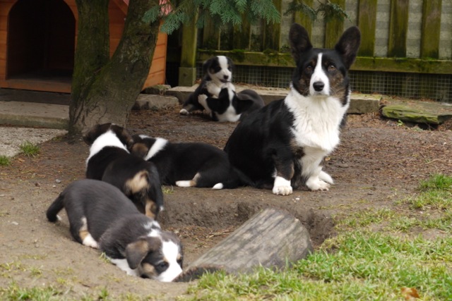 | Myfanwy ist nicht die einzige auf unserem M-Wurf, die für Nachwuchs sorgen soll. Ihre Schwester Meryl (Ch. Joy Transfer Meryl) in Frankreich ist bereits tragend. Und in Wales erwartet die hübsche Rhiwelli Alys von Yvonne Caul einen Wurf von Meurig (Joy Transfer Magic in Blue). Wir freuen uns gespannt auf sämtliche Nachkommen der M-Geschwister und sind jetzt schon stolz auf alle Enkelkinder unserer unvergessenen Glenys. | |||