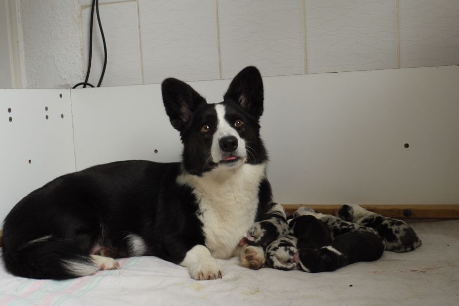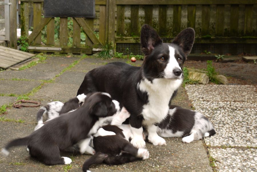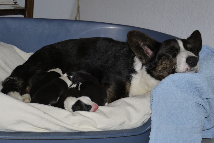 Wir freuen uns, dass es allen so gut geht und Myfanwy ihren acht Welpen