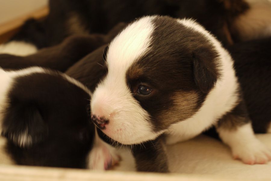 Fotos, die sie von unseren Welpen im Alter von 18 Tagen fotografiert hat.