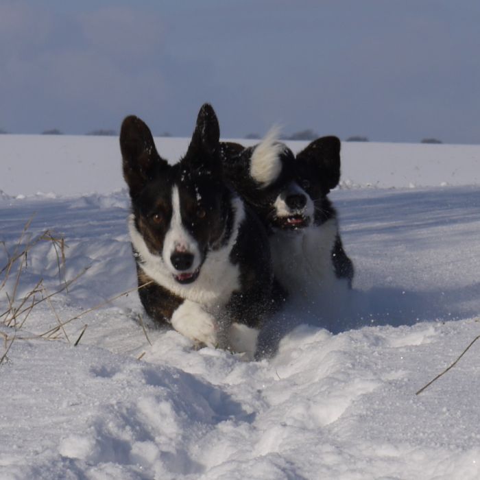 Unsere Hunde freuen sich sehr über den Schnee |