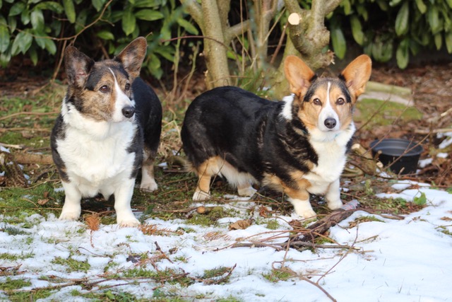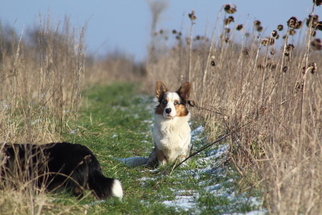 Winter ... Wir haben den sonnigen, frostigen Nachmittag bei einer kleinen Wanderung mit Myfanwy, Inis, Sally, Feny und Silver genossen. Ella wird bald 14 Jahre alt, auf lange Wanderungen gemeinsam mit den jungen Hunden verzichtet sie inzwischen gern. Zusammen mit ihrer liebsten Ima haben auch die beiden älteren Ladies ihren Spaß im Schnee an diesem sonnigen Wintertag gehabt. |