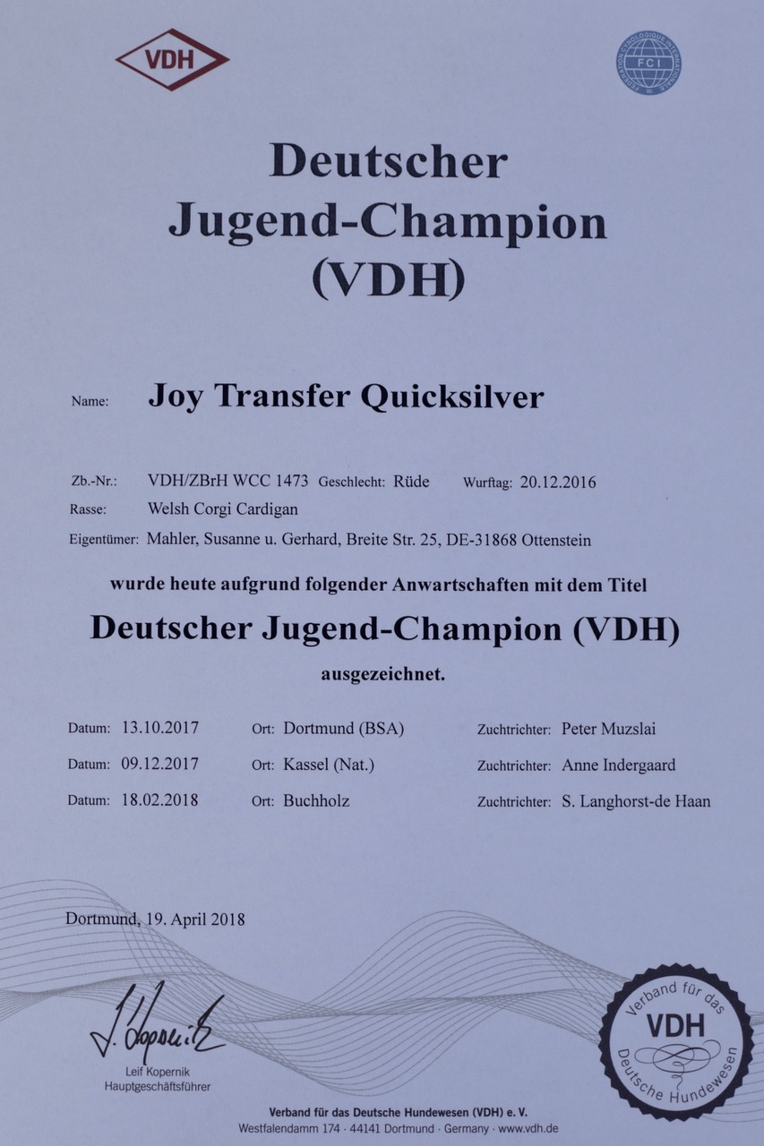 Herzlichen Glückwunsch Deutscher Jugendchampion (VDH & CfBrH)