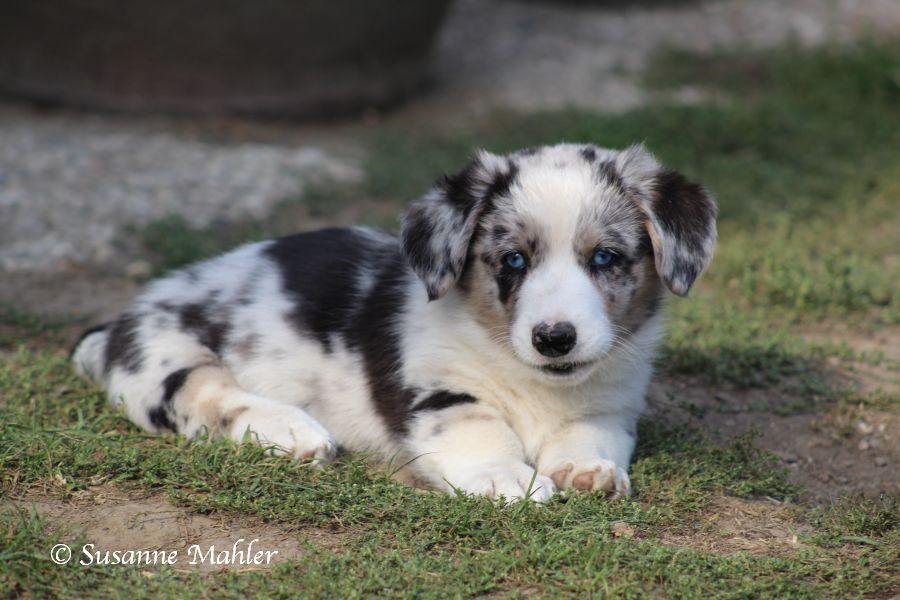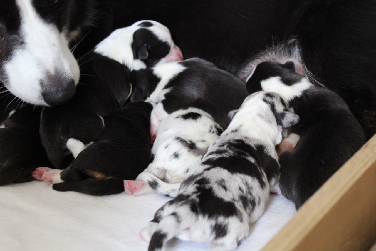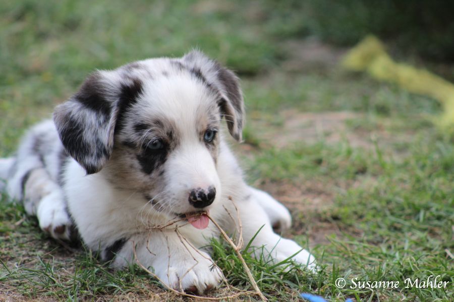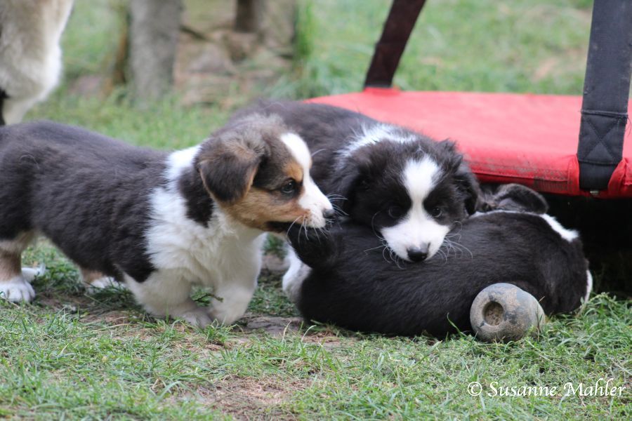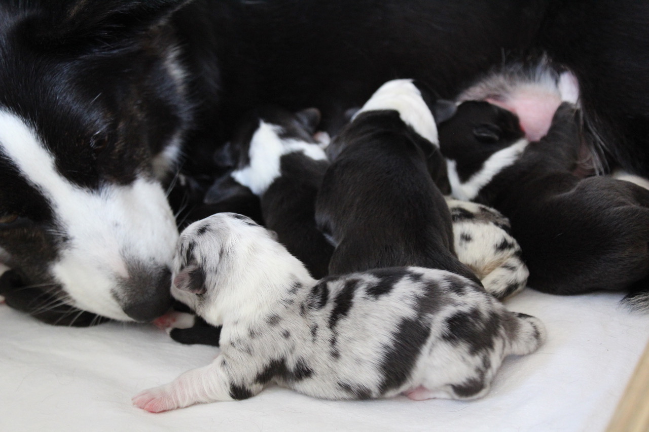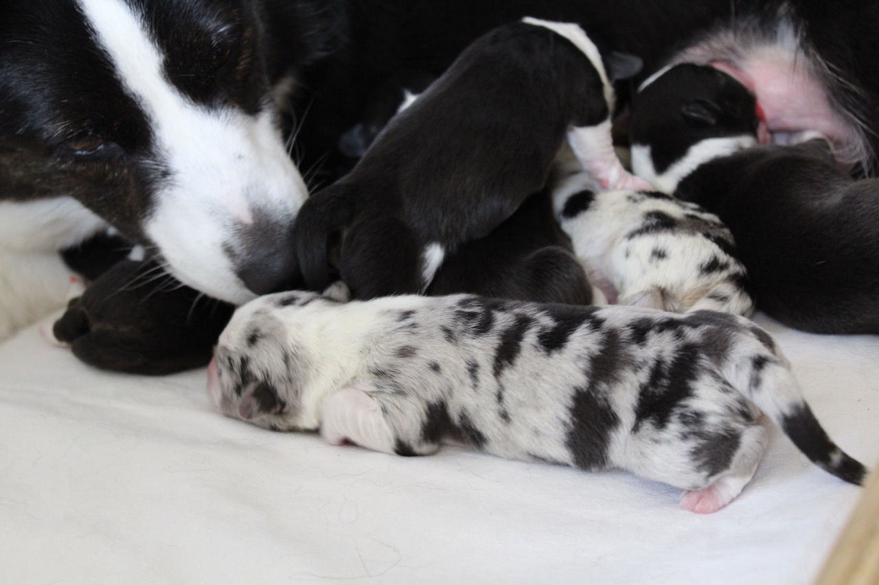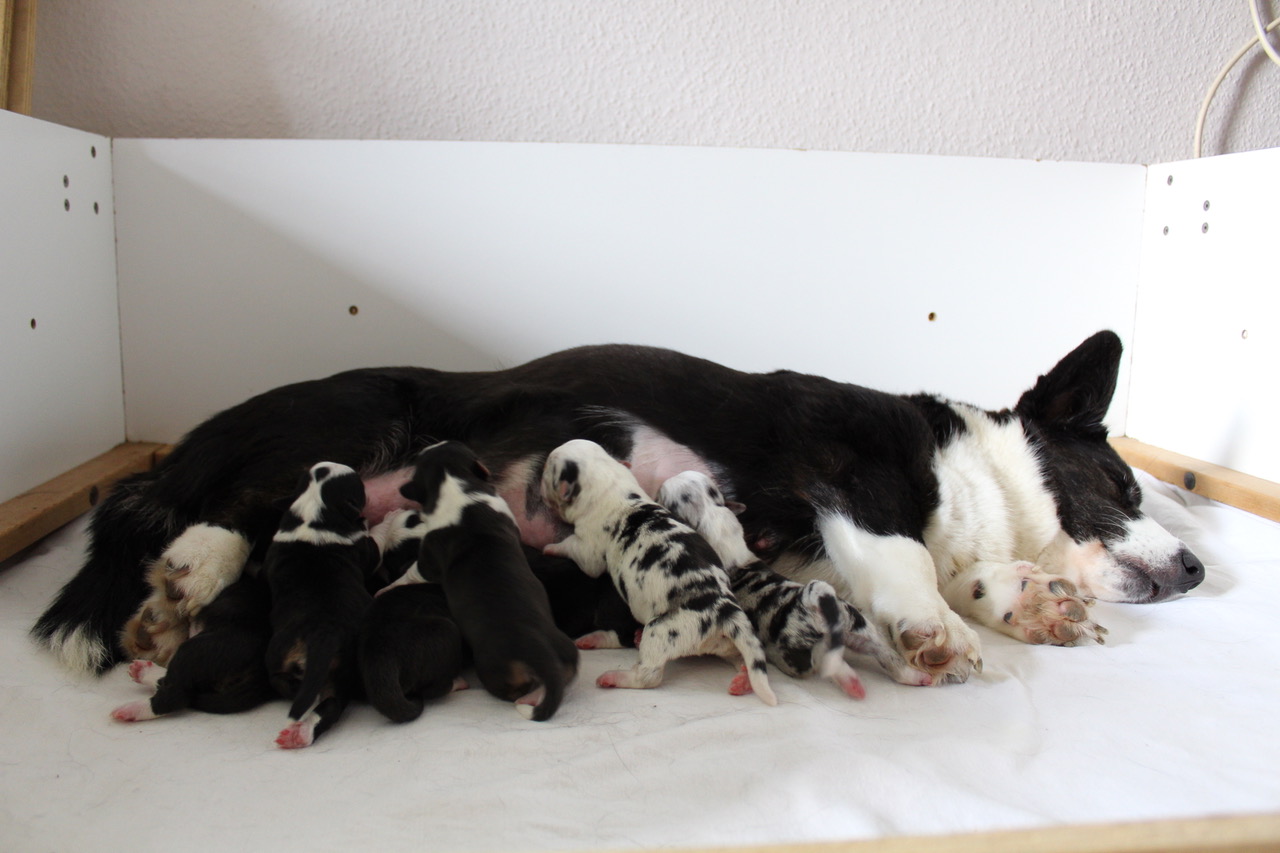 Ein weiterer Wurf in Frankreich ist Anfang Dezember auf die Welt gekommen bei Céline Gobeaut, Kennel "Funny Flower Fields", es sind 7 Welpen in blue merle und red-p.-tri. von "Gandalf the Grey de la Caverne des Anges" und "Joy Transfer Phyllis Phantasy" - Phillie -