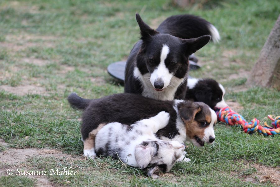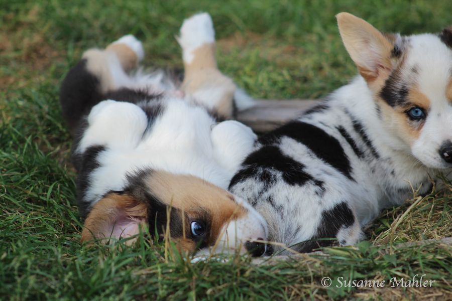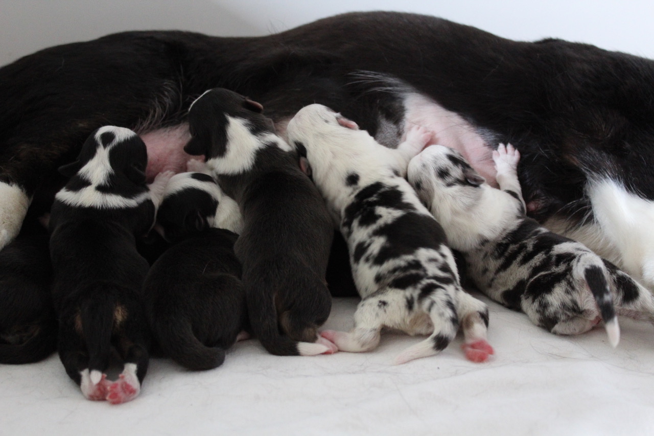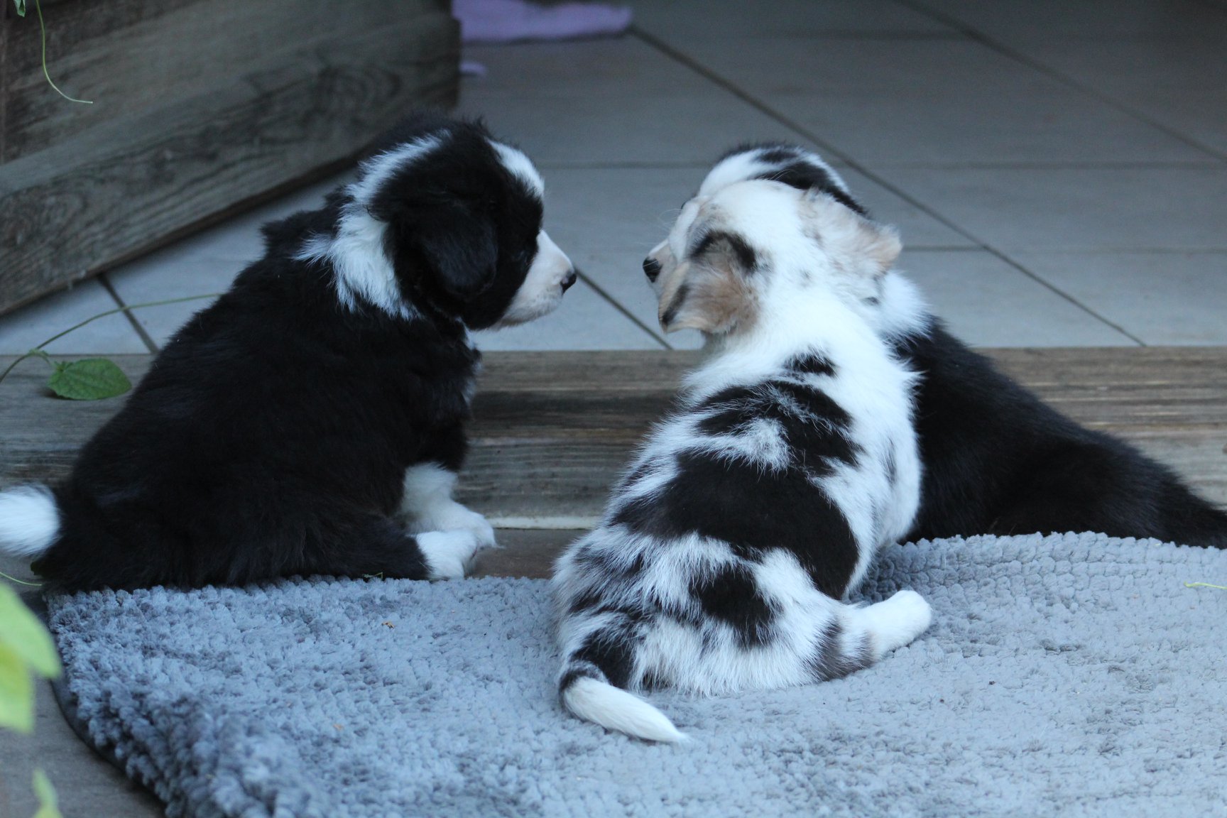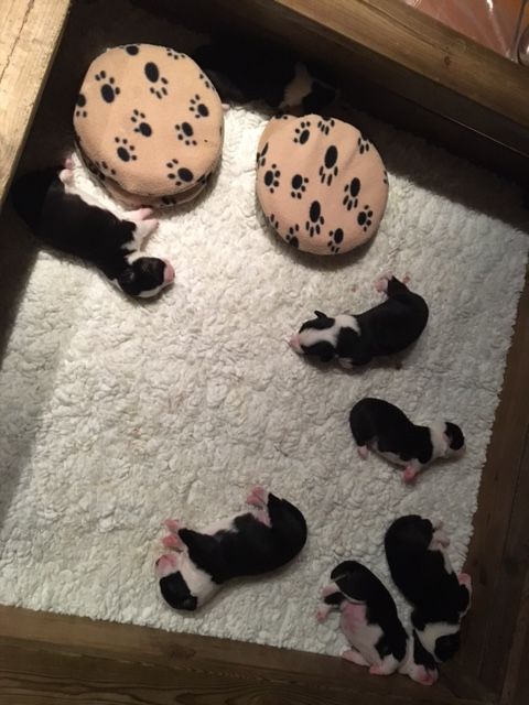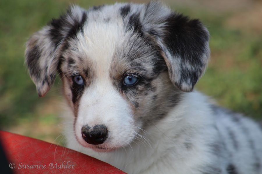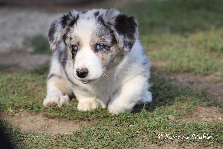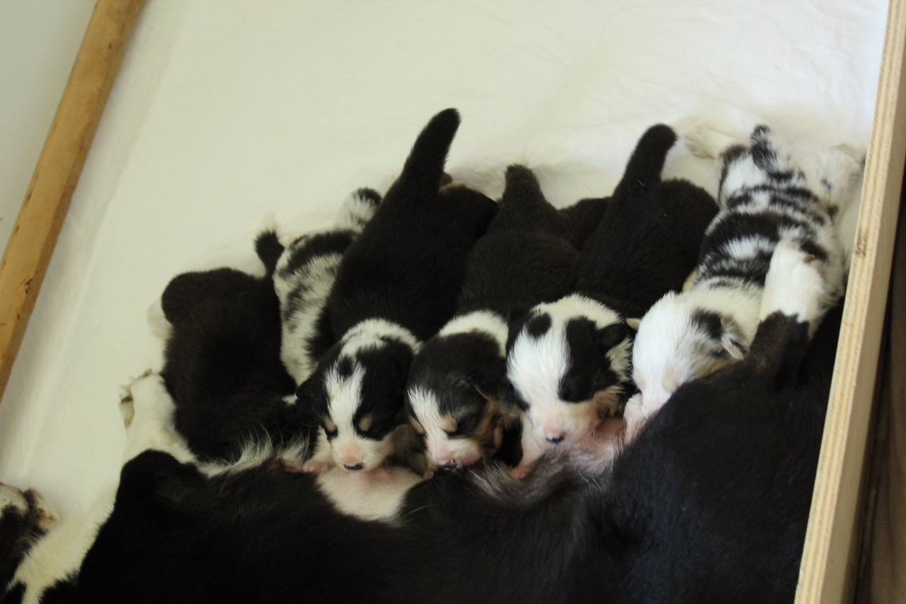 Ein weiterer Wurf in Frankreich ist Anfang Dezember auf die Welt gekommen bei Céline Gobeaut, Kennel "Funny Flower Fields", es sind 7 Welpen in blue merle und red-p.-tri. von "Gandalf the Grey de la Caverne des Anges" und "Joy Transfer Phyllis Phantasy" - Phillie -