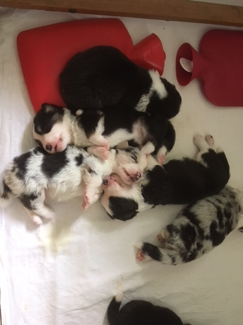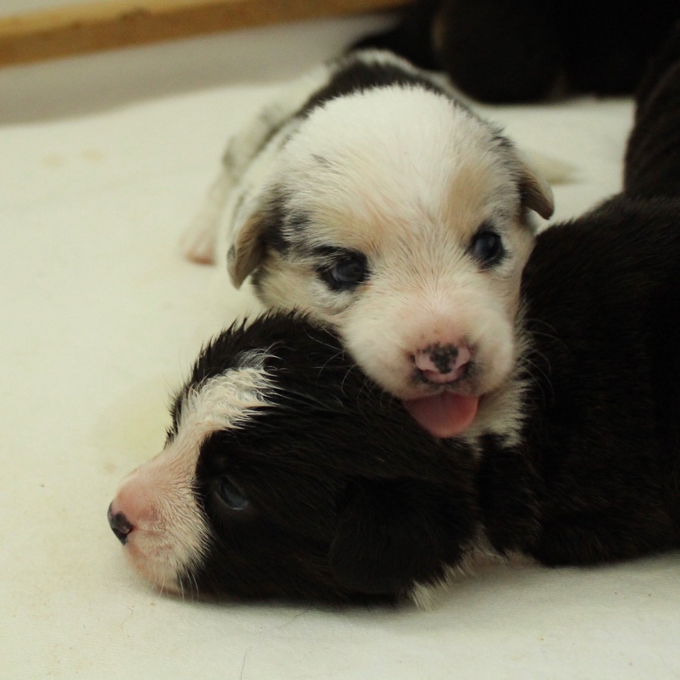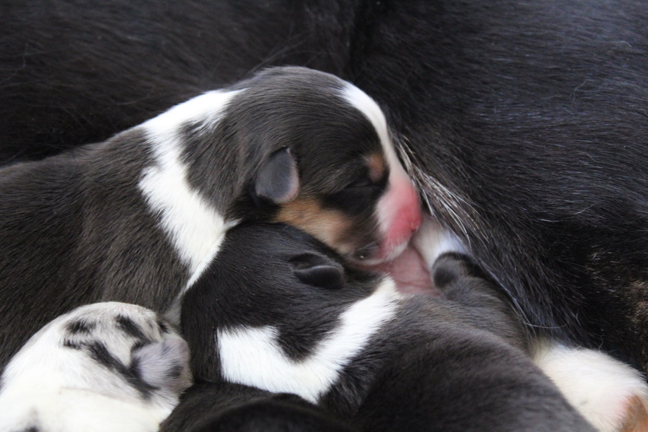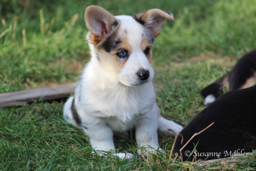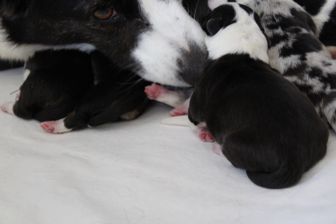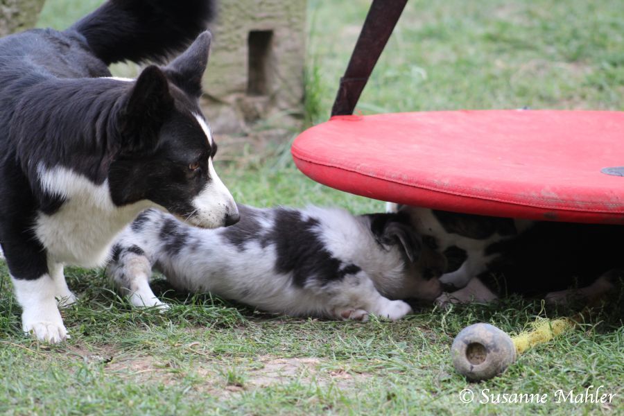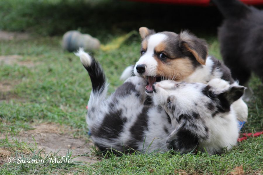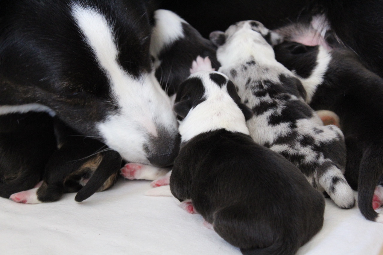 Ein weiterer Wurf in Frankreich ist Anfang Dezember auf die Welt gekommen bei Céline Gobeaut, Kennel "Funny Flower Fields", es sind 7 Welpen in blue merle und red-p.-tri. von "Gandalf the Grey de la Caverne des Anges" und "Joy Transfer Phyllis Phantasy" - Phillie -