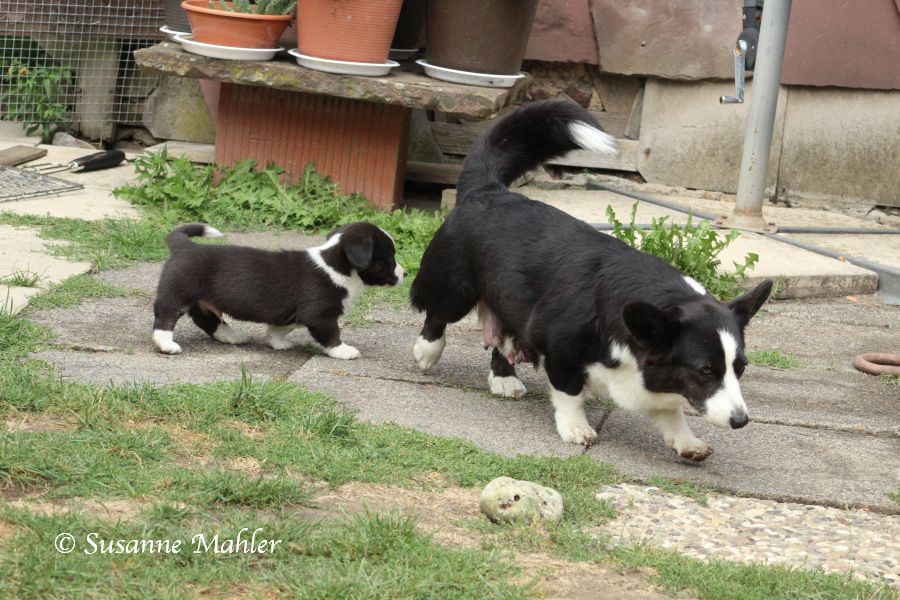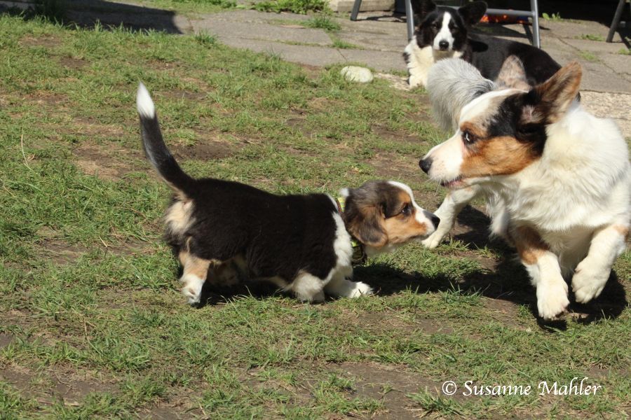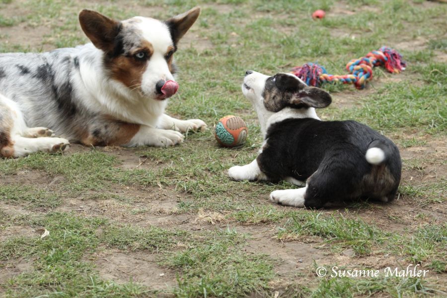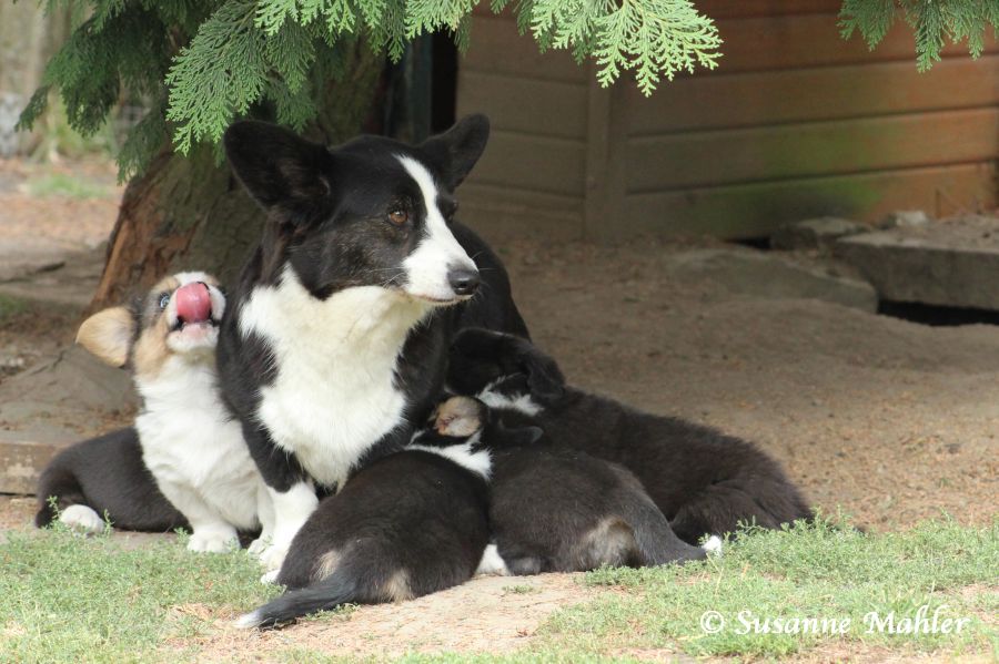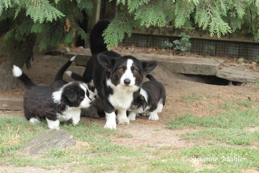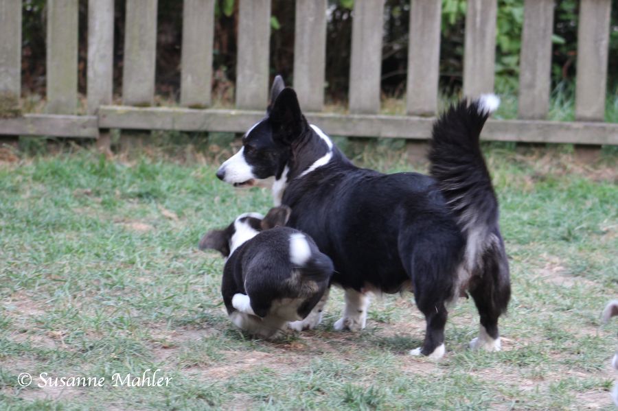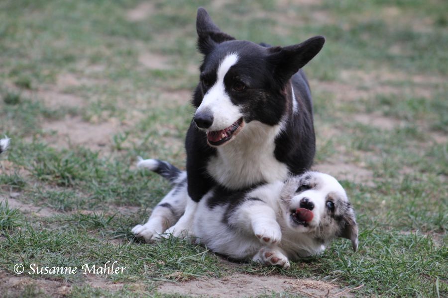 Von unseren anderen Mädels können wir berichten, dass es allen auch ohne spektakuläre Erfolge sehr gut geht. Ella geht nun schon stark auf ihren 14. Geburtstag im April 2018 zu, sie ist dabei noch außergewöhnlich fit und gesund. Ima hat gleich im Januar Geburtstag, sie ist dann 9 Jahre alt. Myfanwy ist nun 5 Jahre alt und sie freut sich genau wie wir darüber, dass ihre beiden Kinder Feny und Silver bei uns geblieben sind. |