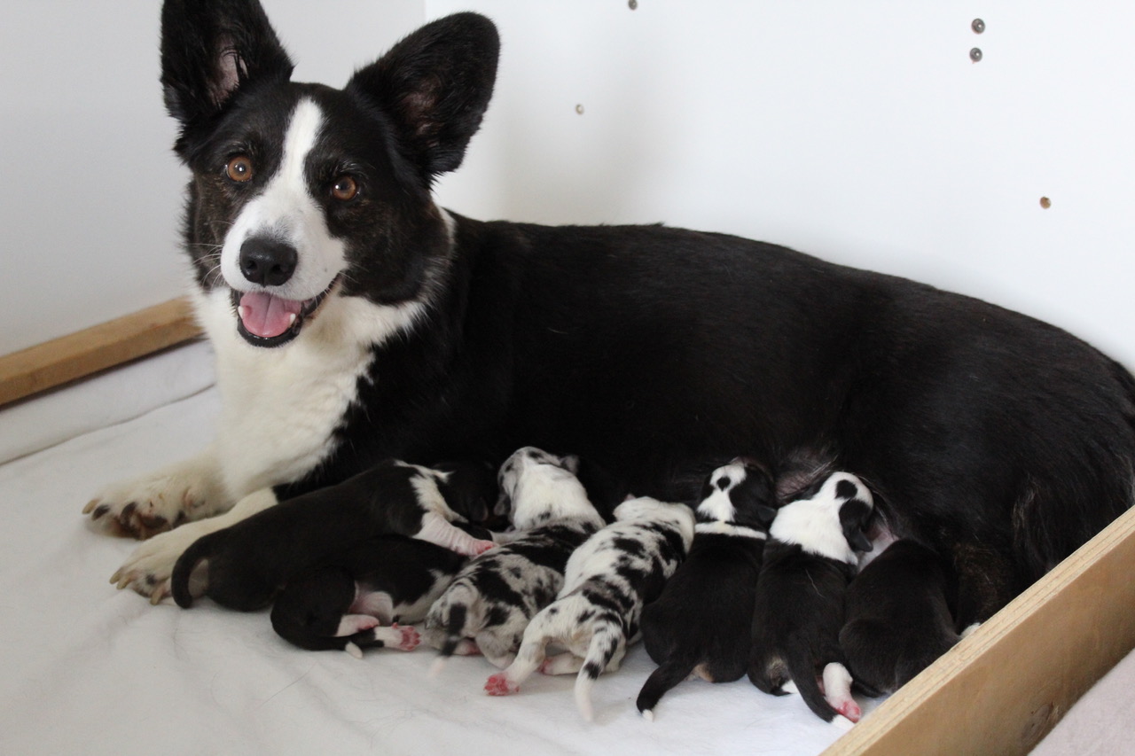 Zu Ostern hat in der Zuchtstätte "Sheep Crook" von Dr. Ann-Ly Peissner in Schorndorf die dänische Hündin "Faarup Linett" sechs hübsche und gesunde Welpen in rot und tricolour bekommen von Dr. Hanna Kobers "Ch. Joy Transfer Ingram". |