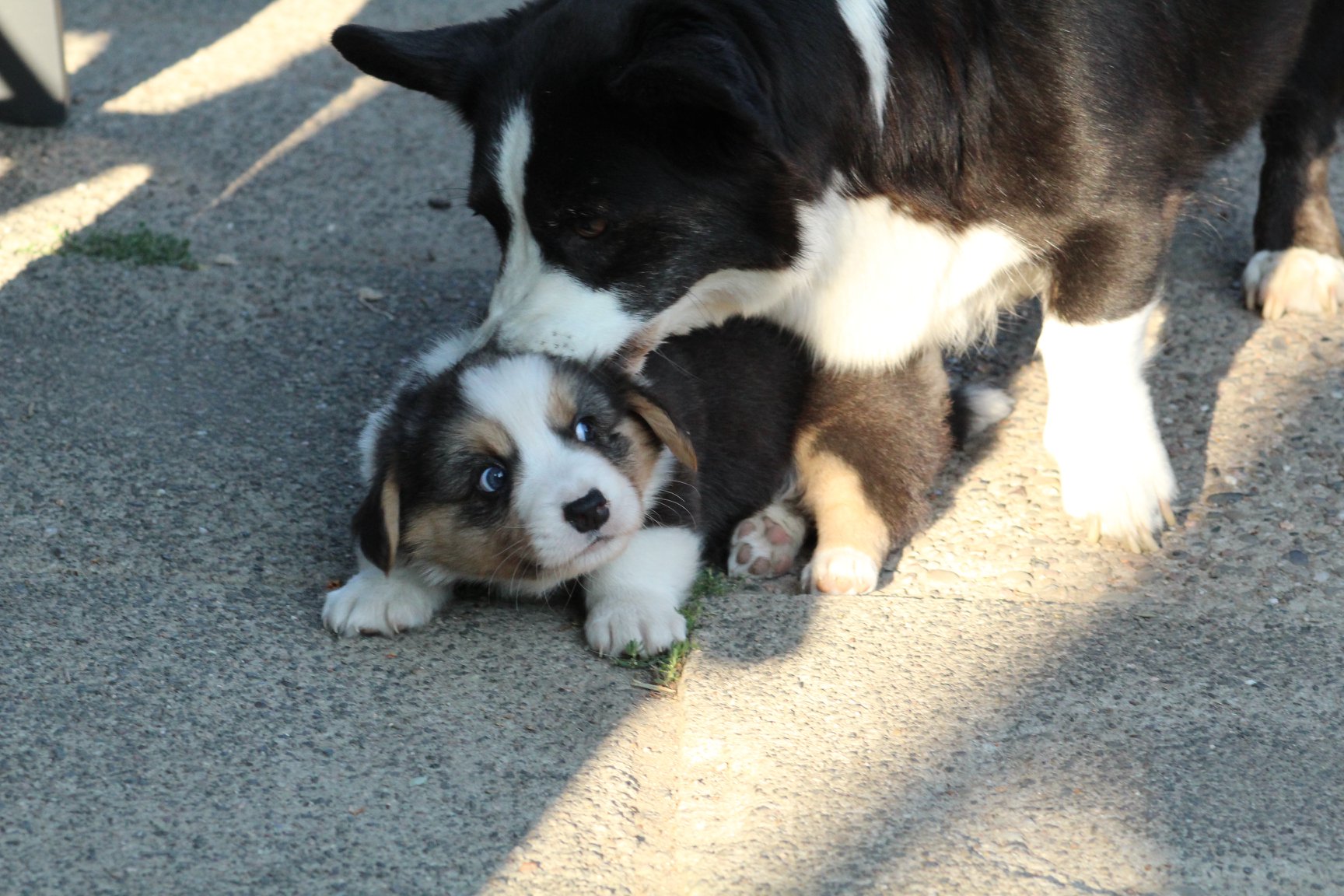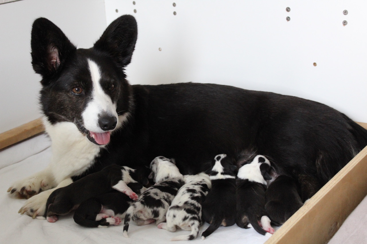 Perla - (Foto links) sieben bri.p.tri. Welpen bekommen von "Int.Ch.