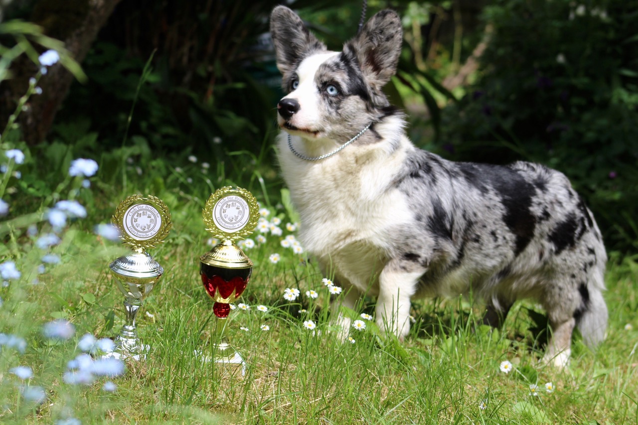 Am Sonntag, 18. Feb., haben wir auf der CAC-Schau der Landesgruppe Hamburg vom Club f. Brit. Hütehunde in Buchholz einen schönen Ausstellungstag verbracht. Die beiden Wurfbrüder Quinn und Silver waren zusammen in der Jugendklasse ausgestellt und wir sind stolz auf die Ergebnisse: |