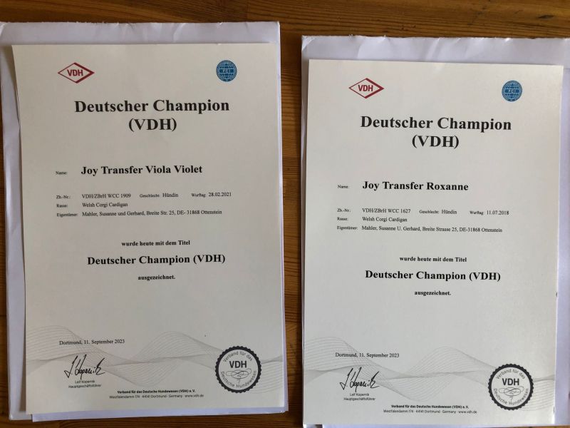 Ich bin ganz stolz auf unsere süße Teggy. Mit einer minimalen Anzahl an Shows hat sie großen Erfolg. Nach ihren erreichten Titeln "Deutscher Jugend-Champion VDH", „Dt. Jugend-Champion CfBrh" und "Dt. Champion VDH" hat sie nun auch den Titel "Dt. Champion CfBrH" bestätigt bekommen.